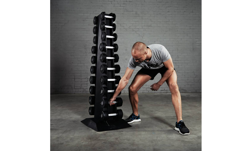 Стойка для гантелей LMX94 Lifemaxx® PU специально разработана для набора гантелей LMX72 Lifemaxx® PU весом 1–10 кг. Она имеет цельную конструкцию, что делает ее очень прочной износостойкой.